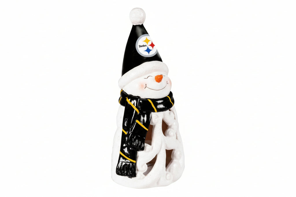 Show off your holiday and Pittsburgh Steelers spirit with this LED 8" Snowman Lit Garden Statue. This statue comes ready to hang, complete with colorful LED lights and a welcoming glow.